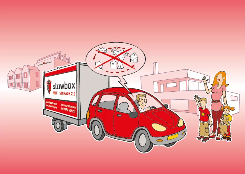 Laad de StowBox thuis vol. Je hoeft geen apart busje of boedel aanhanger meer te huren.